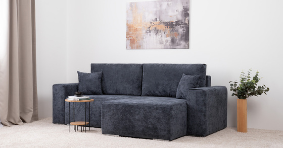 Диван-кровать угловой Тэдди 1504 композиция 3, букле Pique 009 синий, модульная система, сборка на любую сторону