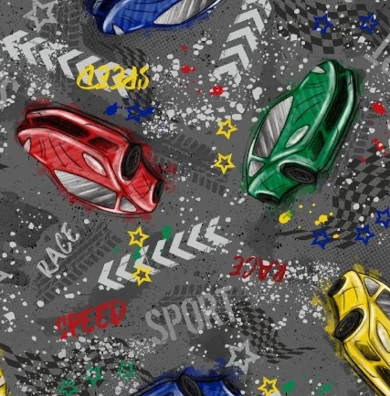 Ткань с рисунком, нанесённым термопечатью на саржу; 100 % полиэфир, плотность 240 г/пм.