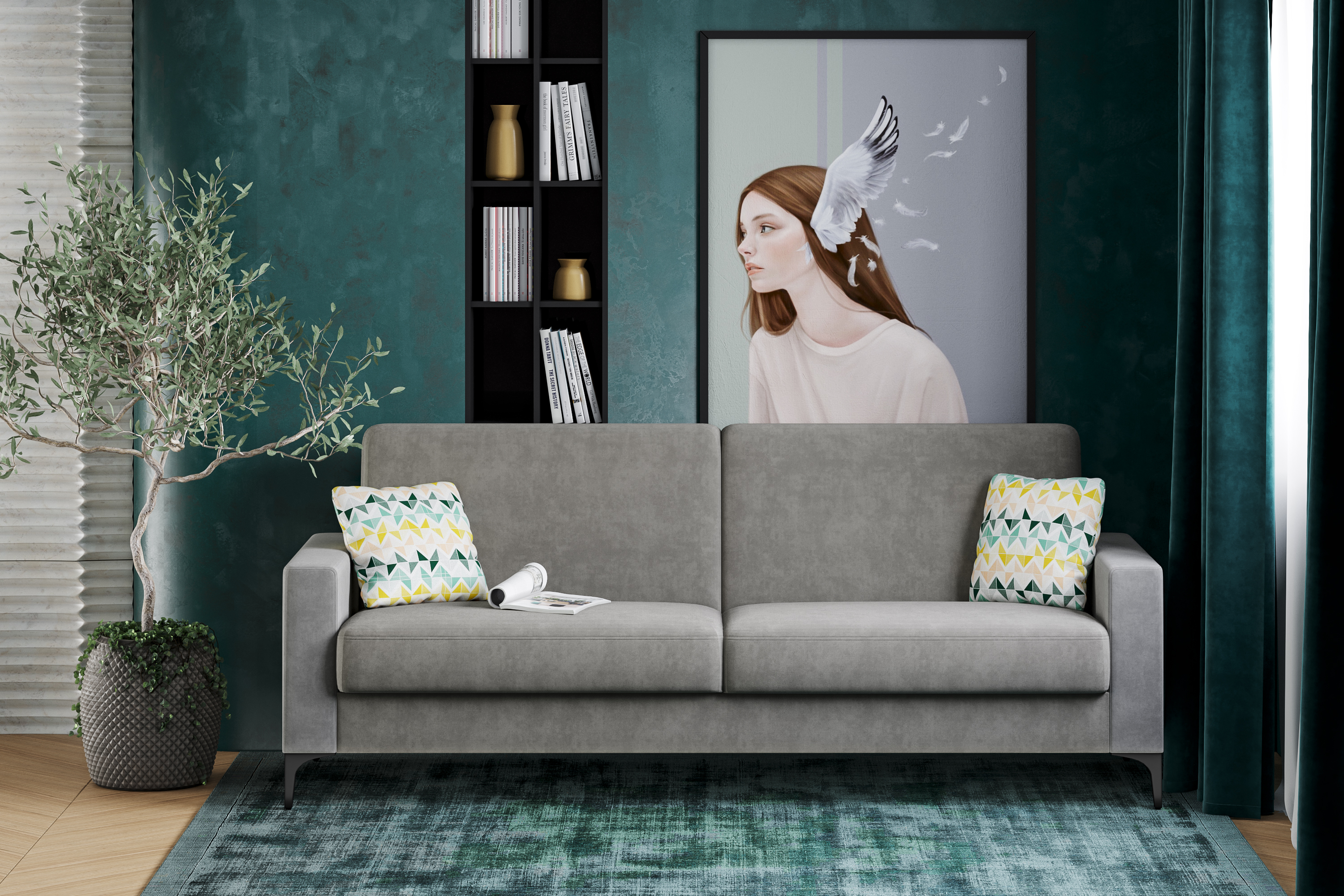 Диван-кровать прямой Тэдди 1503 композиция 1, букле Pique 007 оливковый, модульная система