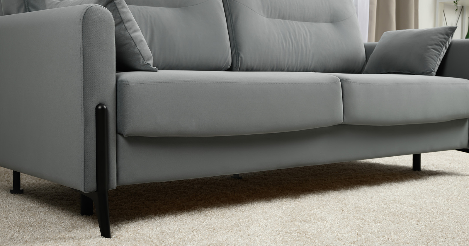 Барселона - современный диван, стиль которого удачно подчеркнут элегантными металлическими опорами.