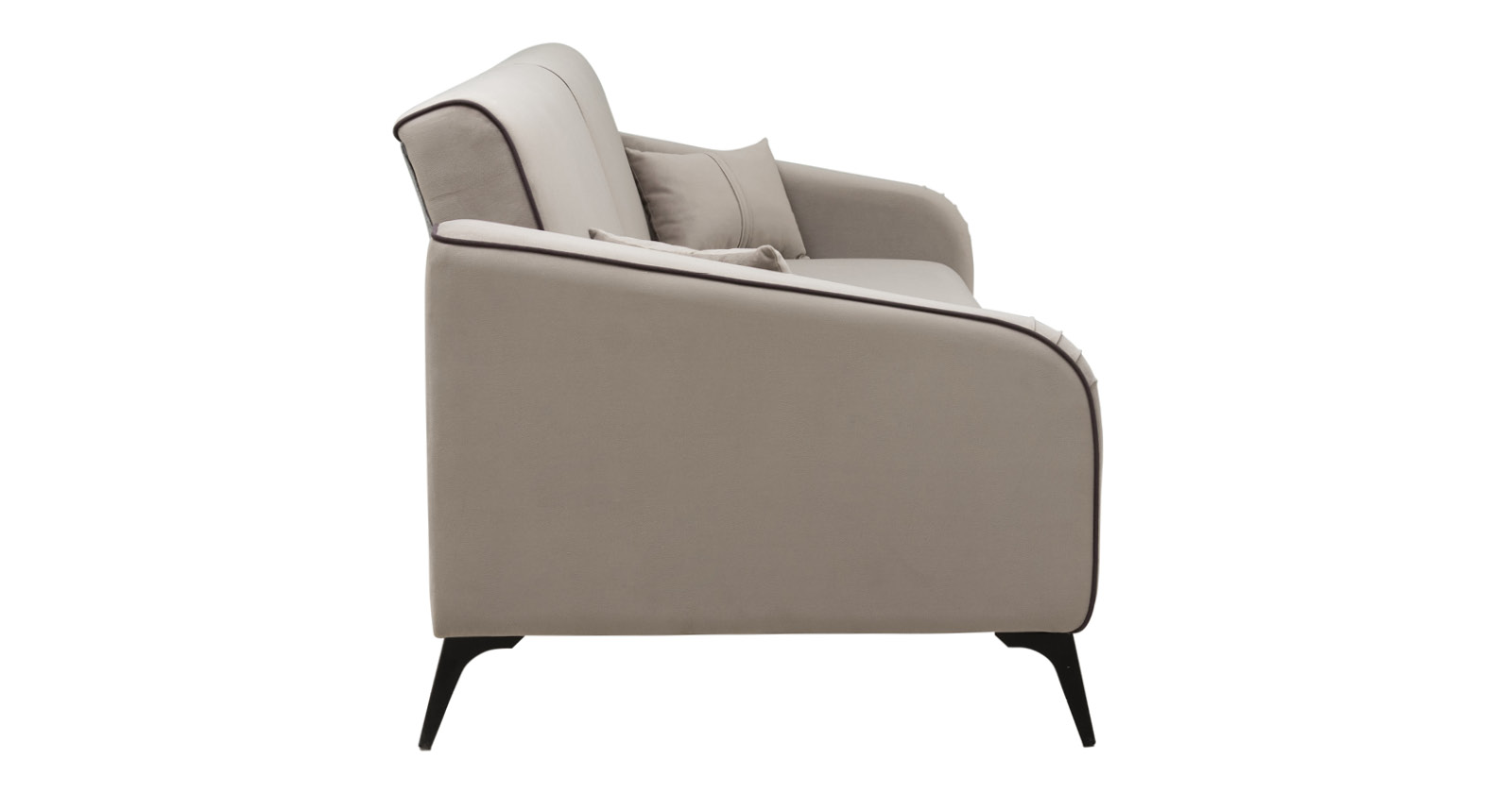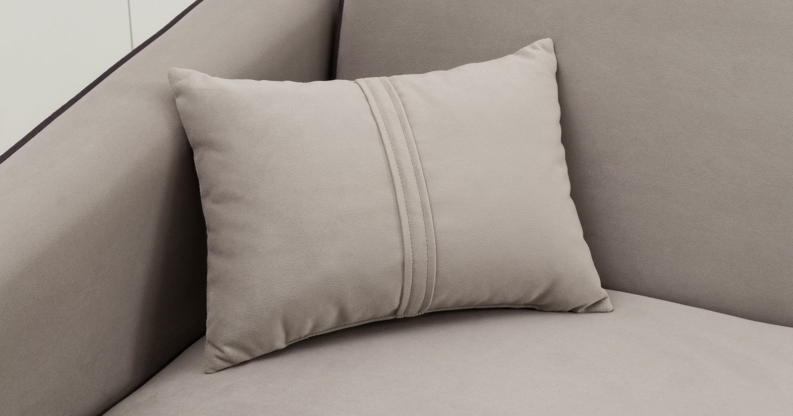 Спинка и сиденье разделяются пополам двойным кантом по центру и одинарным по краям сидения, для придания одной единой формы. Подлокотники с изгибом на лицевой стороне и мягкими закругленным углом со складками, с выраженным контрастным ровным кантом по внешнему контуру изделия и изогнутой линией канта.