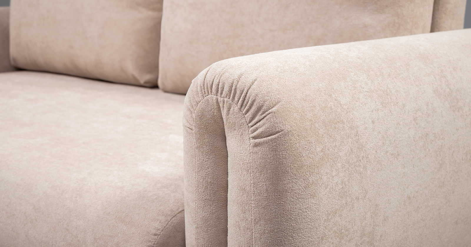 Декоративные утяжки и складки на подлокотниках придают дивану неповторимый шарм, который станет изюминкой любого интерьера — от классического до современного. Приспинные подушки со сборкой в верхней части.