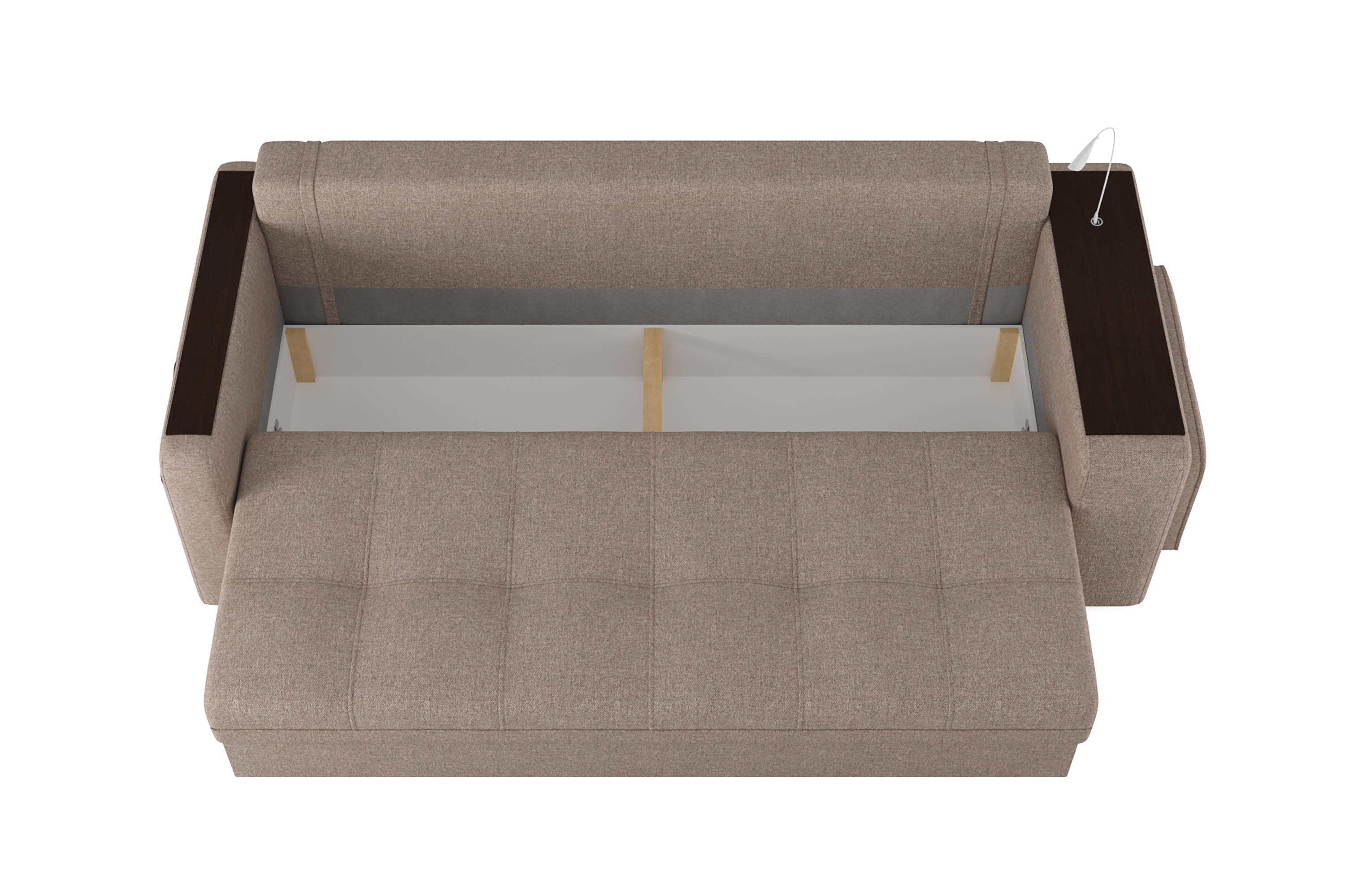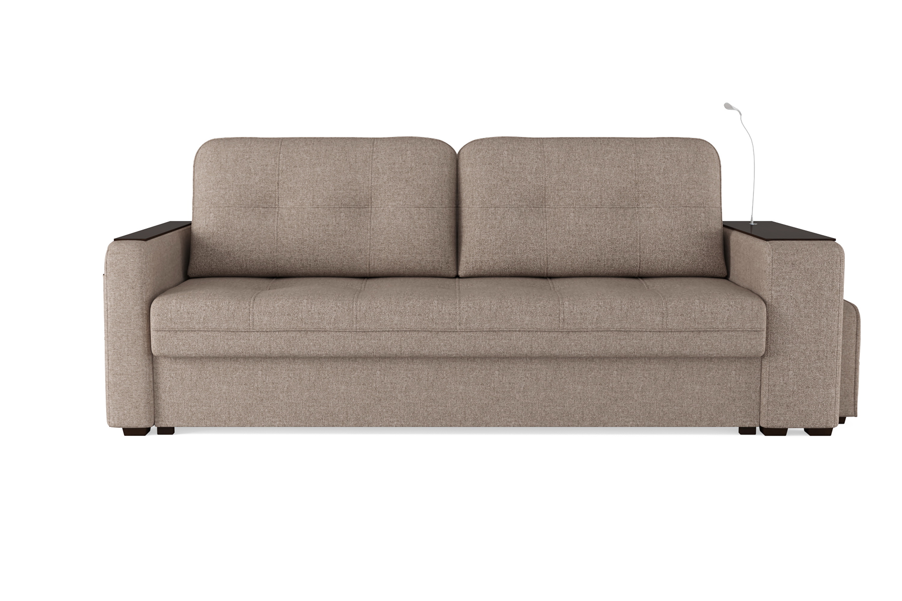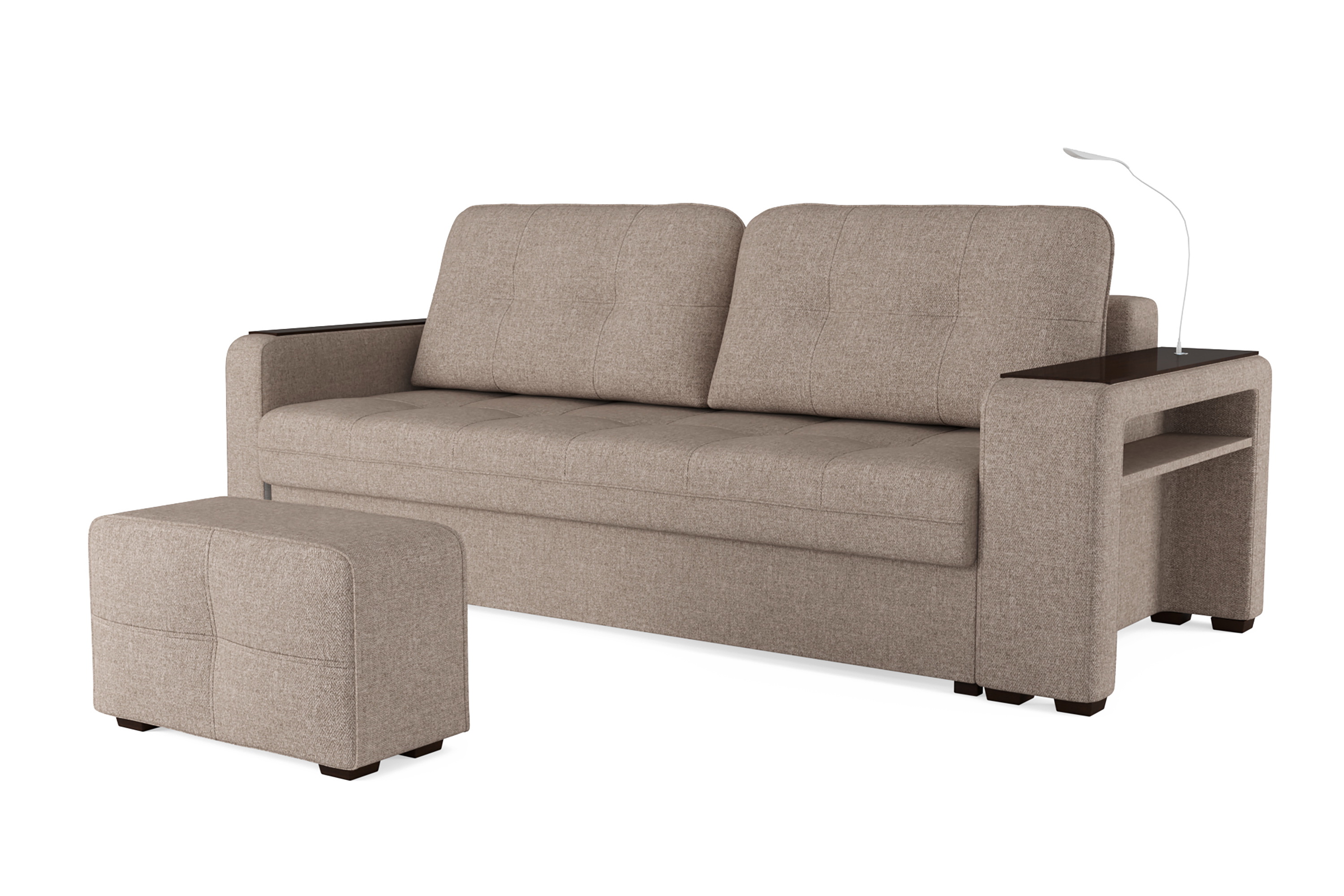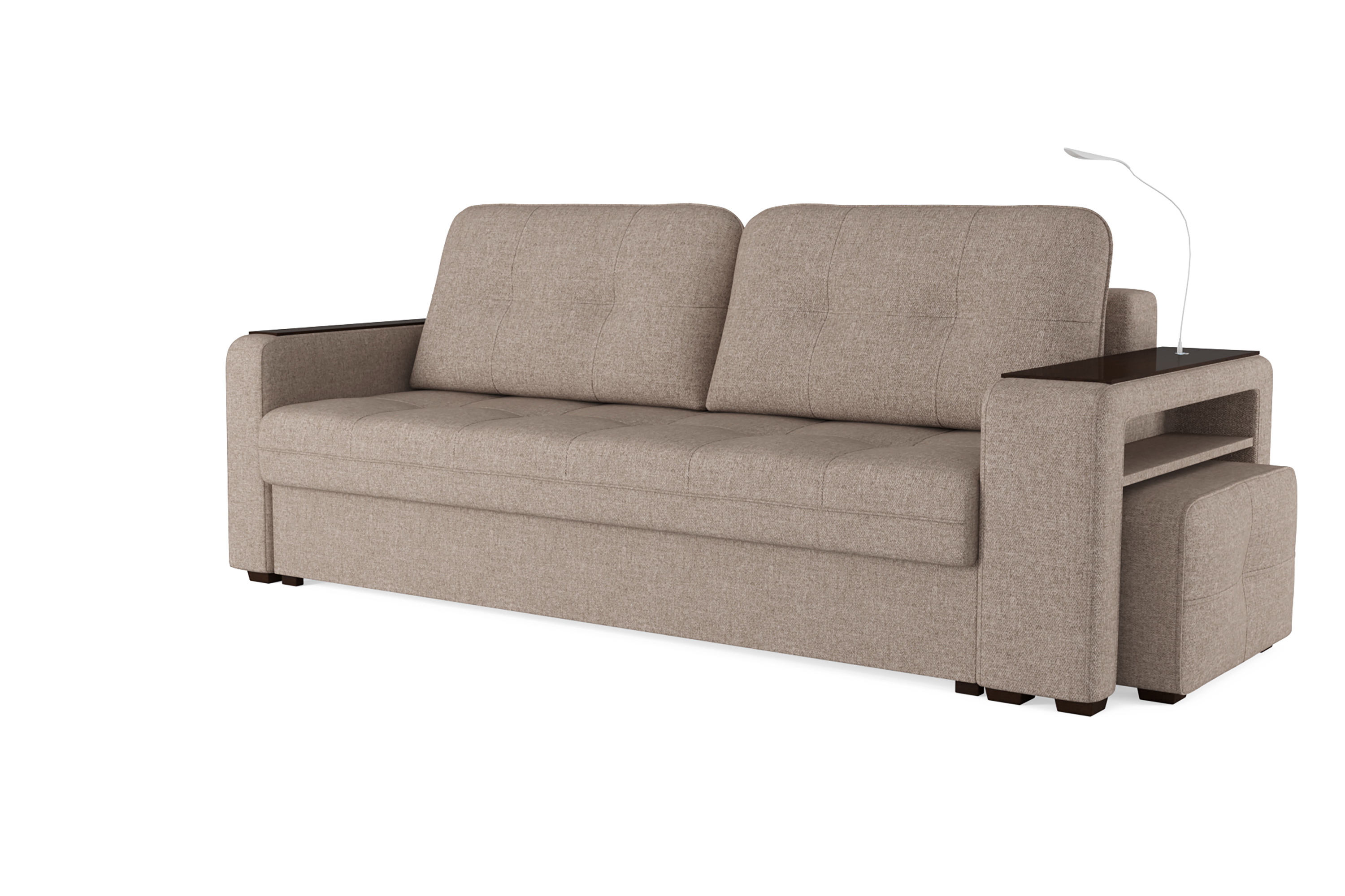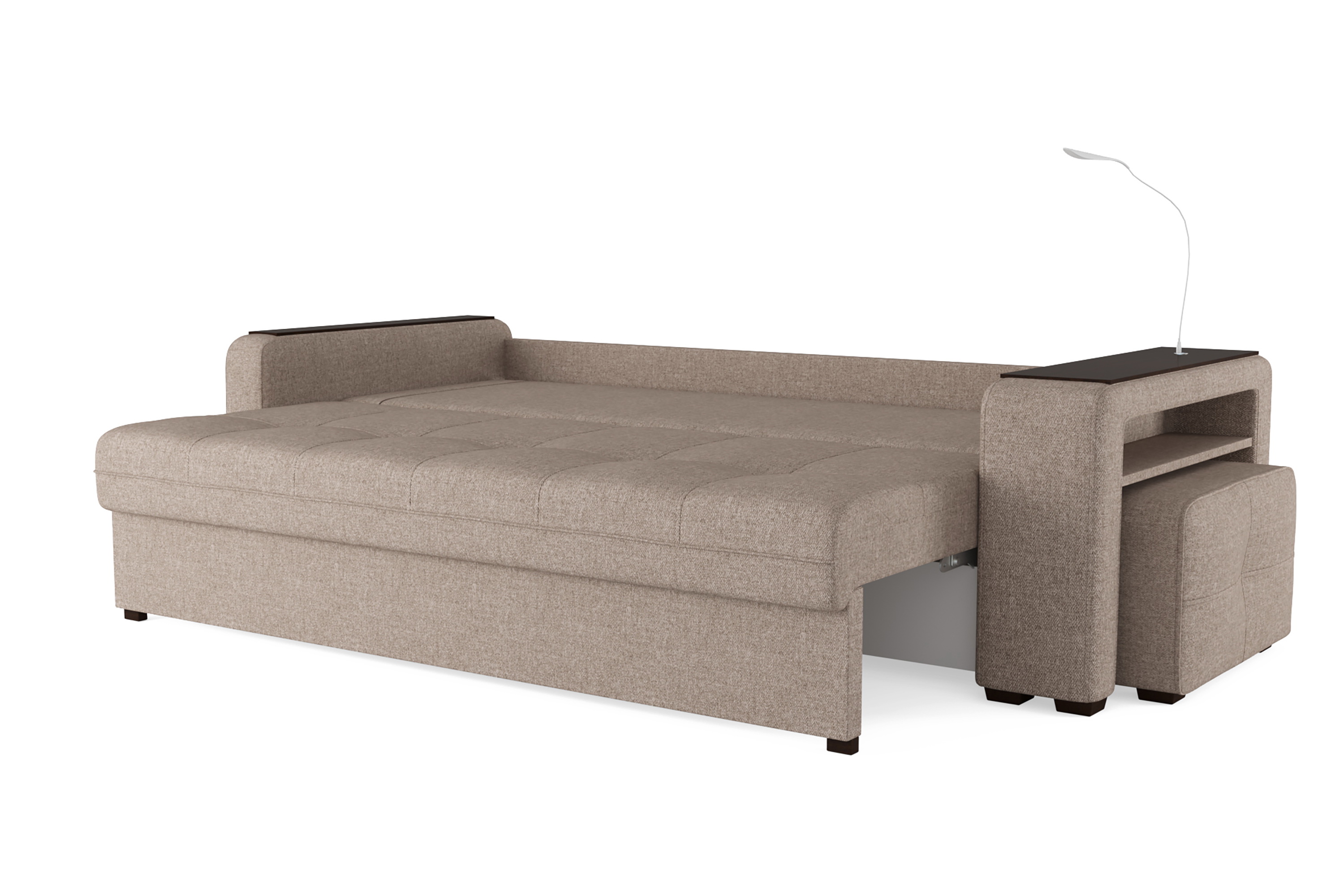 Диван «SMART 4» — это не просто мягкая мебель, а один из ключевых элементов интерьера с обширным функционалом, где эстетика тесно соседствует с комфортом и эргономичностью.  Одна боковина оснащена карманом для хранения мелочей и гаджетов, другая боковина совмещает одновременно: рабочую поверхность, за счет широкой накладки, двойной  usb - порт  и портативную лампу точечного света, которая входит в комплект. Добавить контрастных деталей в интерьер поможет пуф, интегрированный в подлокотник. Этот вариант для современных людей, которые ценят комфорт и удобство отдыха. Мягкое сиденье с легкостью трансформируется в просторное спальное место, на котором смогут утроиться ваши гости. Стильный и уютный, он станет отличным решением, если вы ищите не только красоту, но и комфорт.