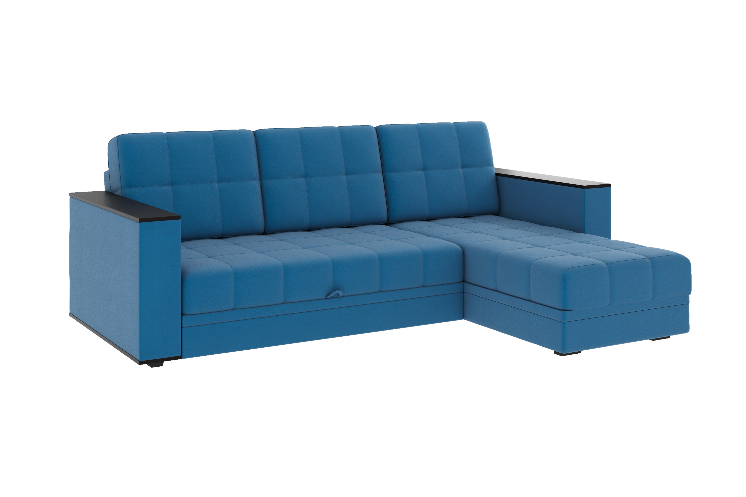 Диван-кровать угловой Атлант велюр синий со спальным местом (сборка на любую сторону)
