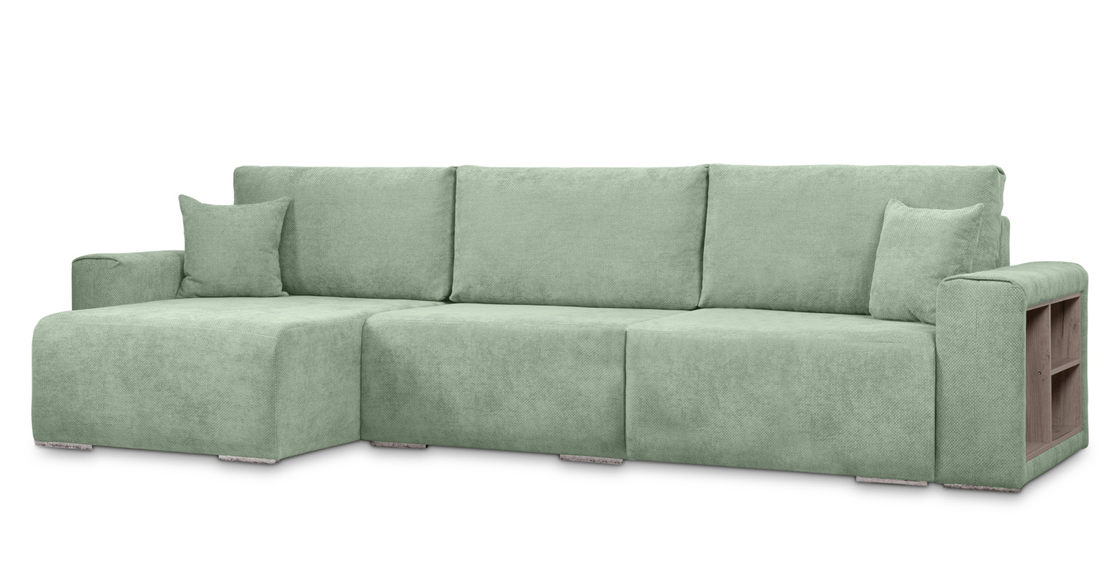 Диван-кровать угловой Оксфорд 715 композиция 1, шенилл STORM 9 мятный, модульная система, сборка на любую сторону