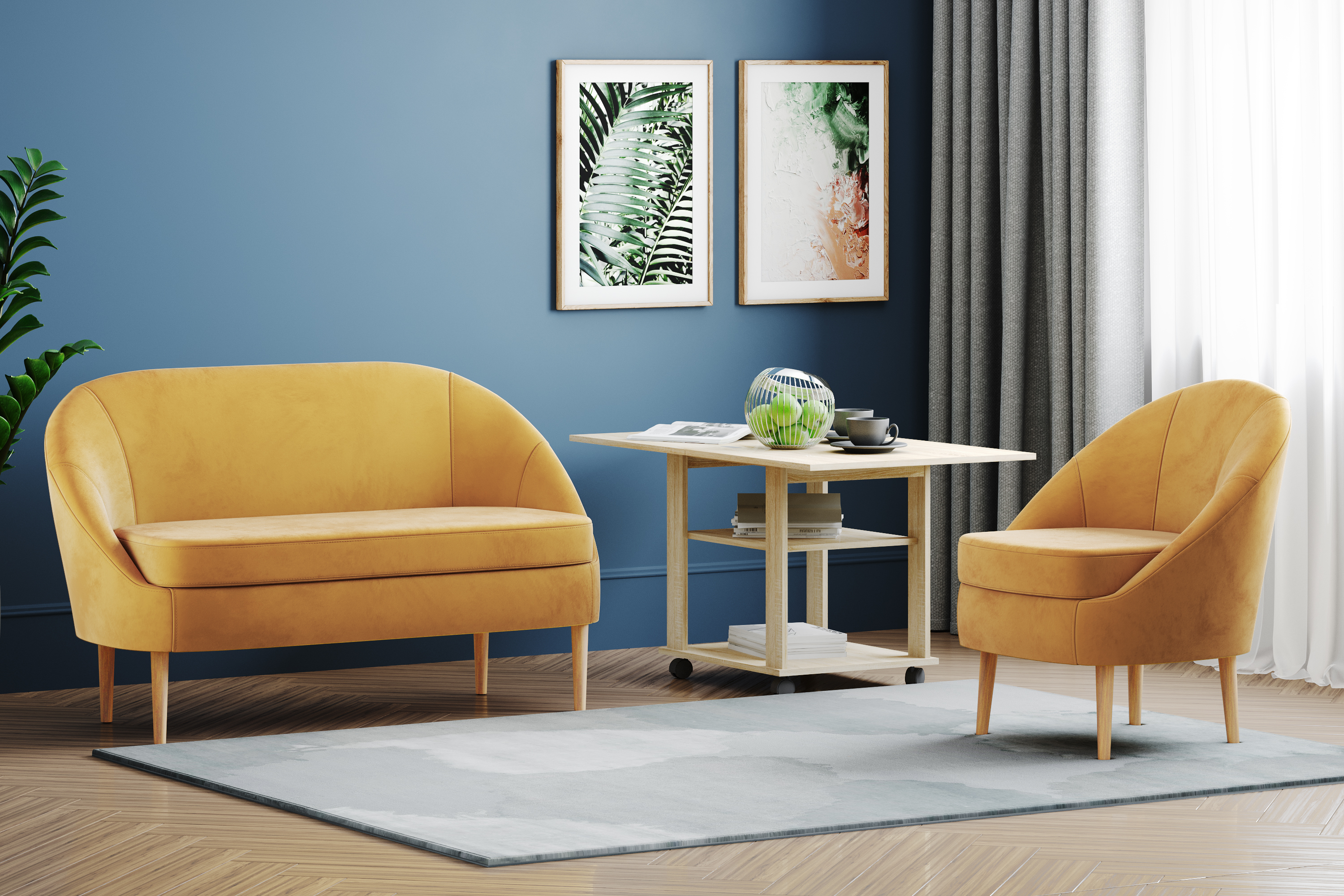 Кресло для отдыха Монако велюр Ультра мустард горчичный с пружинным блоком (высота опор - 120 мм)