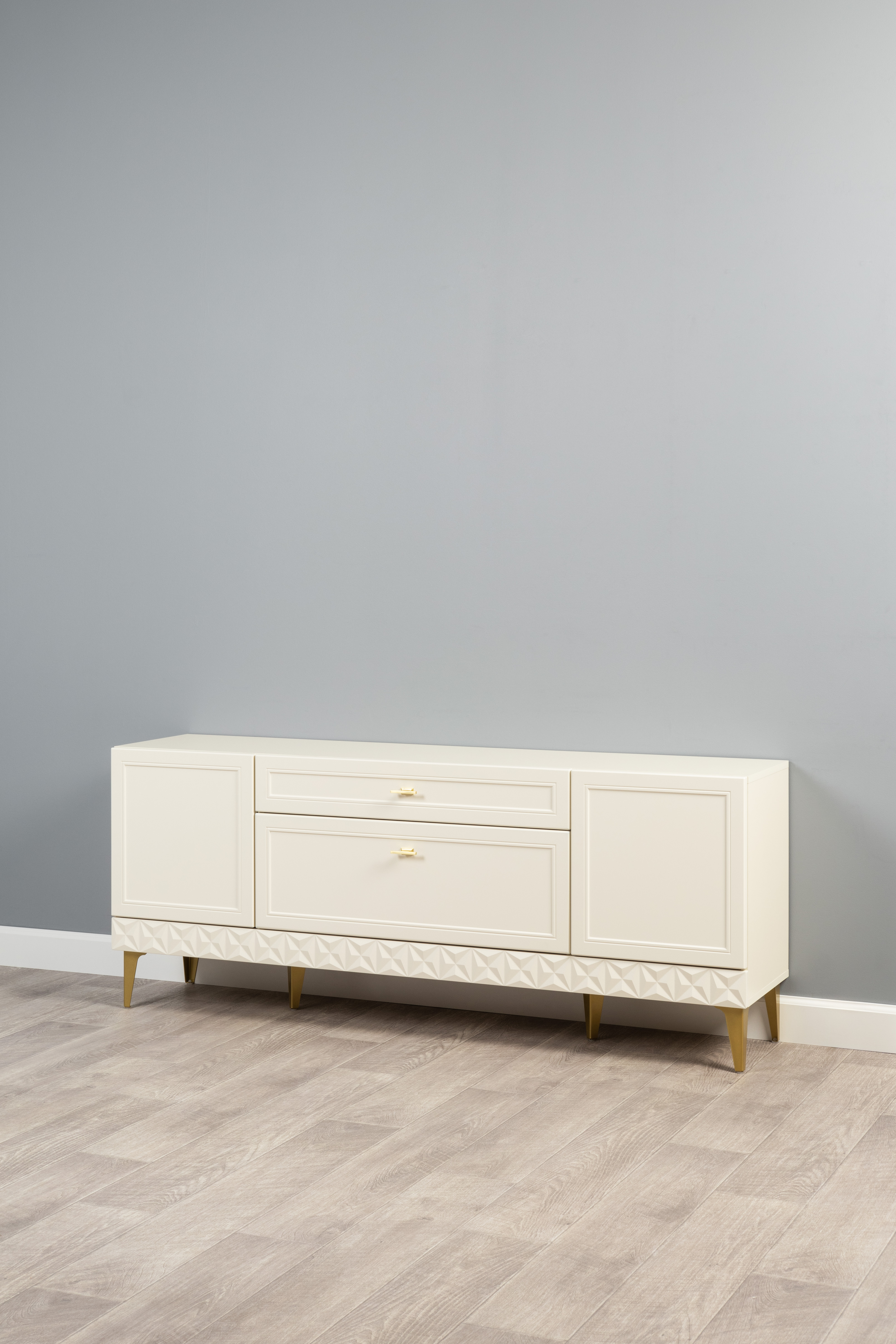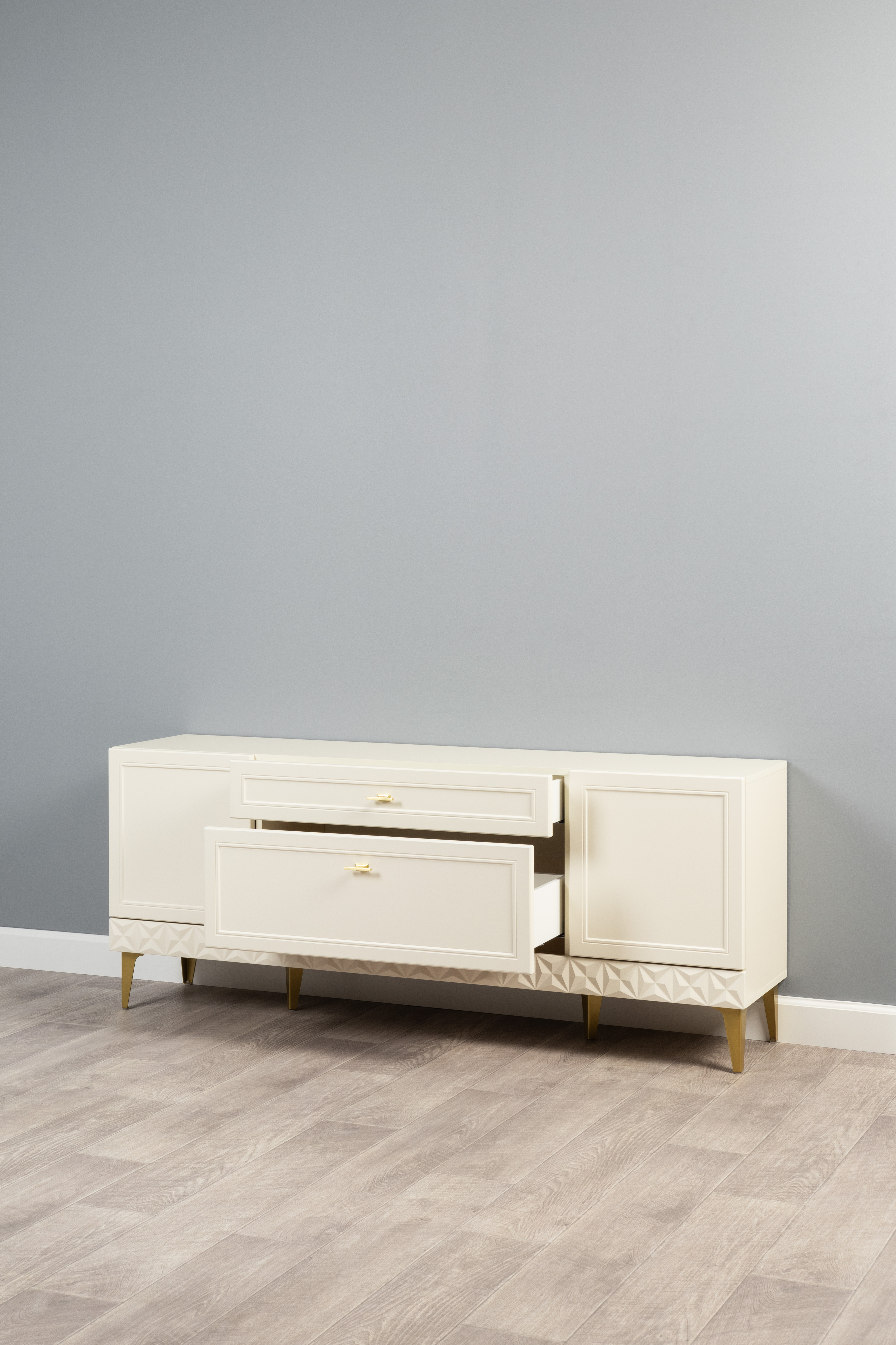 Гостиная Марион композиция 2 слоновая кость С341 PE, слоновая кость 6898 ПВХ, белый PE шагрень (собирается на любую сторону)