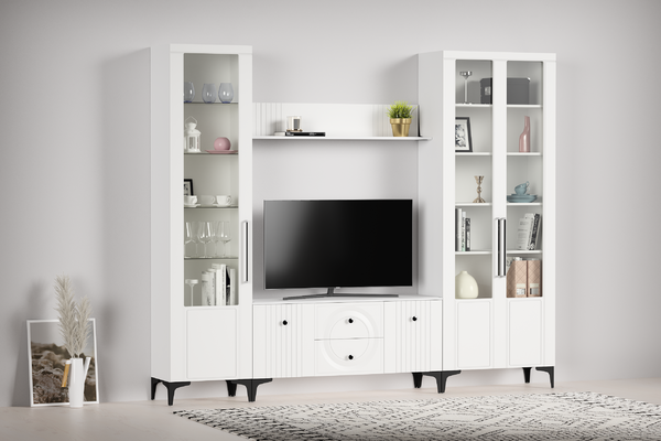 Гостиная Альба композиция 1 дуб золотой CRAFT, белый премиум, без подсветки