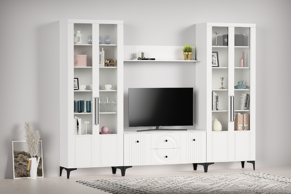 Гостиная Альба композиция 1 дуб золотой CRAFT, белый премиум, без подсветки