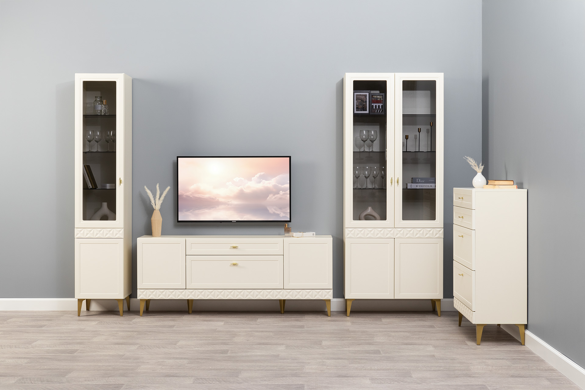 В коллекции представлены три типа витрин с тонированным закалённым стеклом, которые придают пространству лёгкость и свет. «Марион» — идеальное сочетание традиций и актуального дизайна в каждой детали.