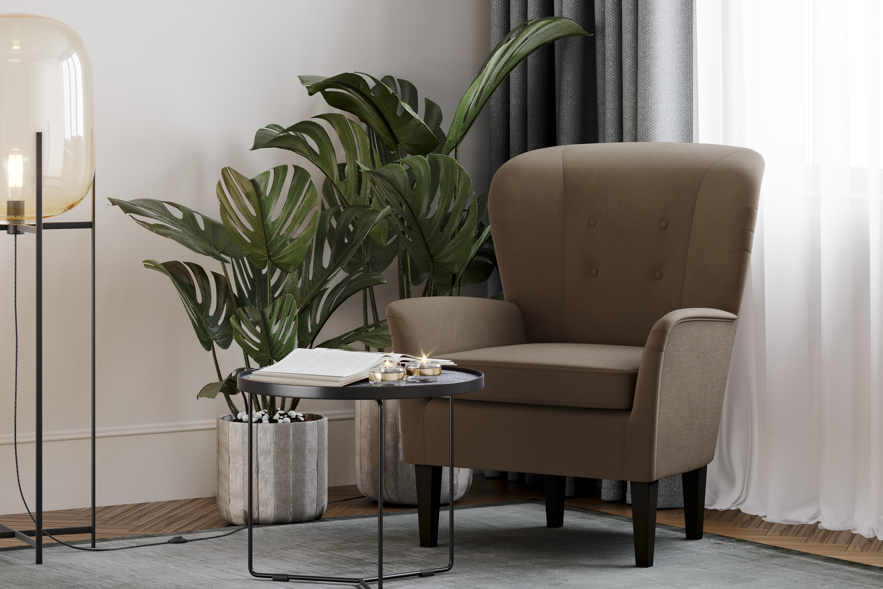 Кресло для отдыха Маттиас ТК 120 велюр монстера, moss 615, зеленый