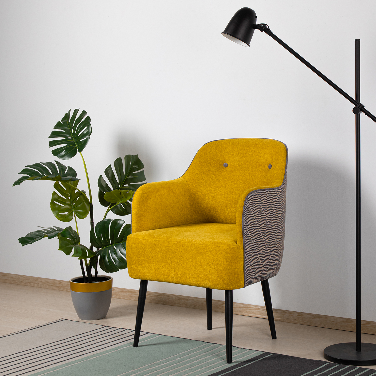 Кресло для отдыха Селеста ТК 477 велюр горчичный, жаккард серо синий, графитово-серый