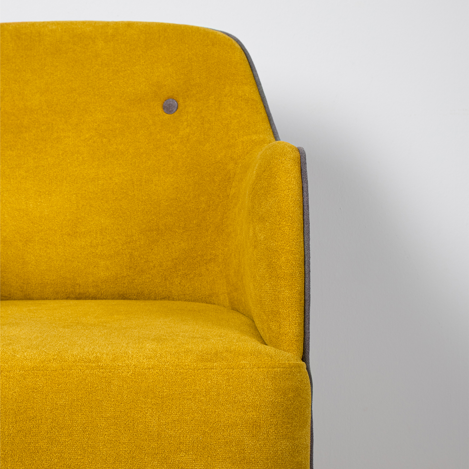 Декоративный кант по внешним контурам подлокотников и спинки. Две утяжки с пуговицами на спинке сиденья