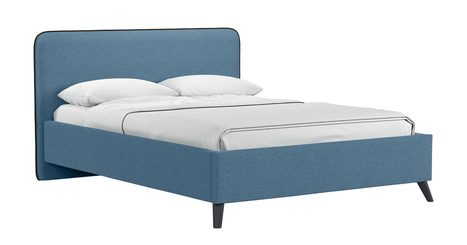 Cкругленный торец изголовья оформлен контрастным кантом.
