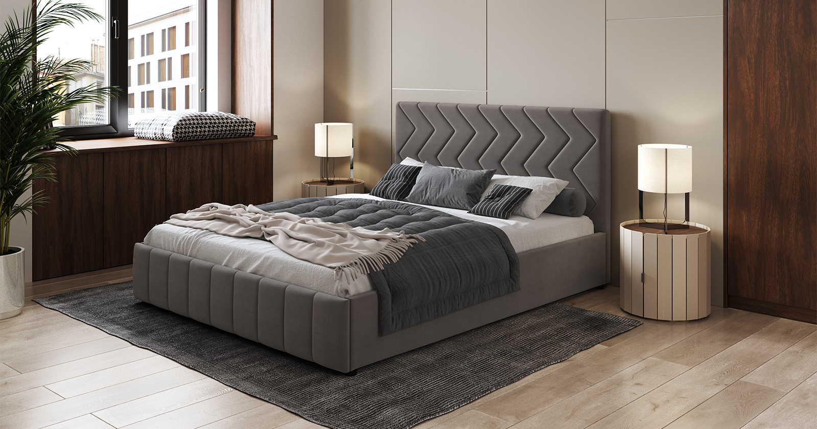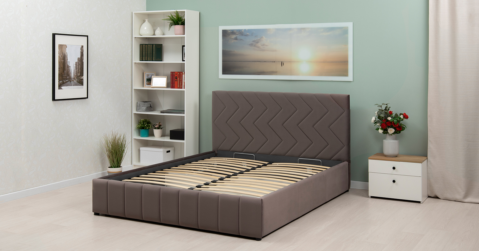 Кровать Милана 160 велюр серо-коричневый с ортопедическим основанием и подъемным механизмом