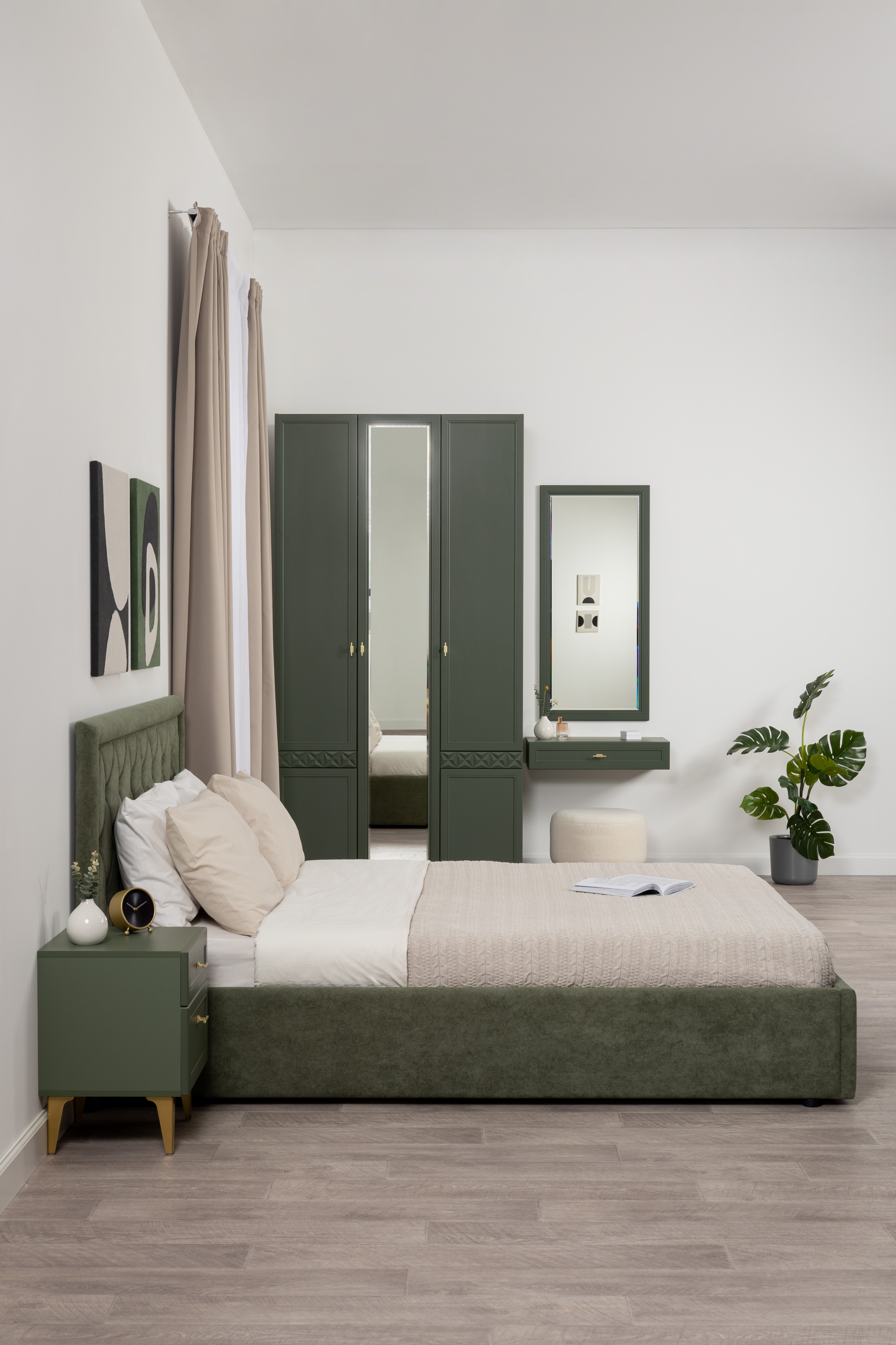 Шкаф для одежды Марион 16.340.03 дымчатый зеленый K521, олива шагрень AG 1050 ПВХ (собирается на любую сторону)