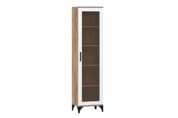 "МАРСЕЛЬ" - оригинальная коллекция мебели, которая сделает ваш интерьер современным и стильным. Благодаря высоким ножкам и длинным ручкам он привнесет в комнату нотку ретро-атмосферы. Теплый оттенок дерева сделает комнату более уютной. Витрина является элементом коллекции, характеризующейся гармоничным сочетанием эффекта дерева с темными и светлыми фасадамии. Мебель из коллекции может быть оформлена в современном стиле, с элементами индустриального и ретро стиля. Это идеальная коллекция для любителей нетривиальных решений в интерьере, она не перегружает, но станет отличным дополнением к оформлению помещения. Шкаф-пенал "Марсель" предназначен для хранения или демонстрации различных вещей и предметов. Изделия универсальной сборки: дверь может крепиться как на левую, так и направую сторону.