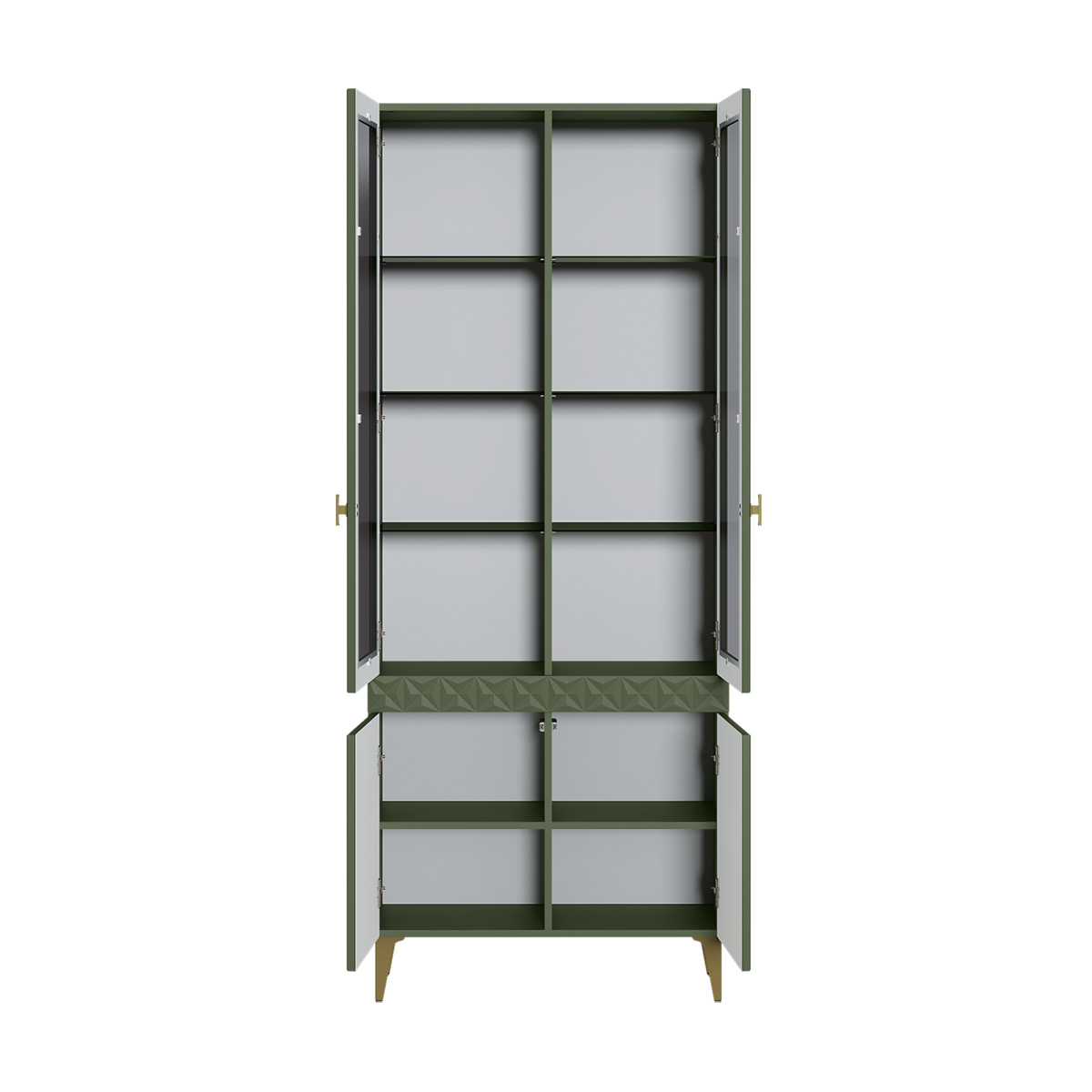 Шкаф-витрина Марион 16.397.02 дымчатый зеленый K521, олива шагрень AG 1050 ПВХ (собирается на любую сторону)