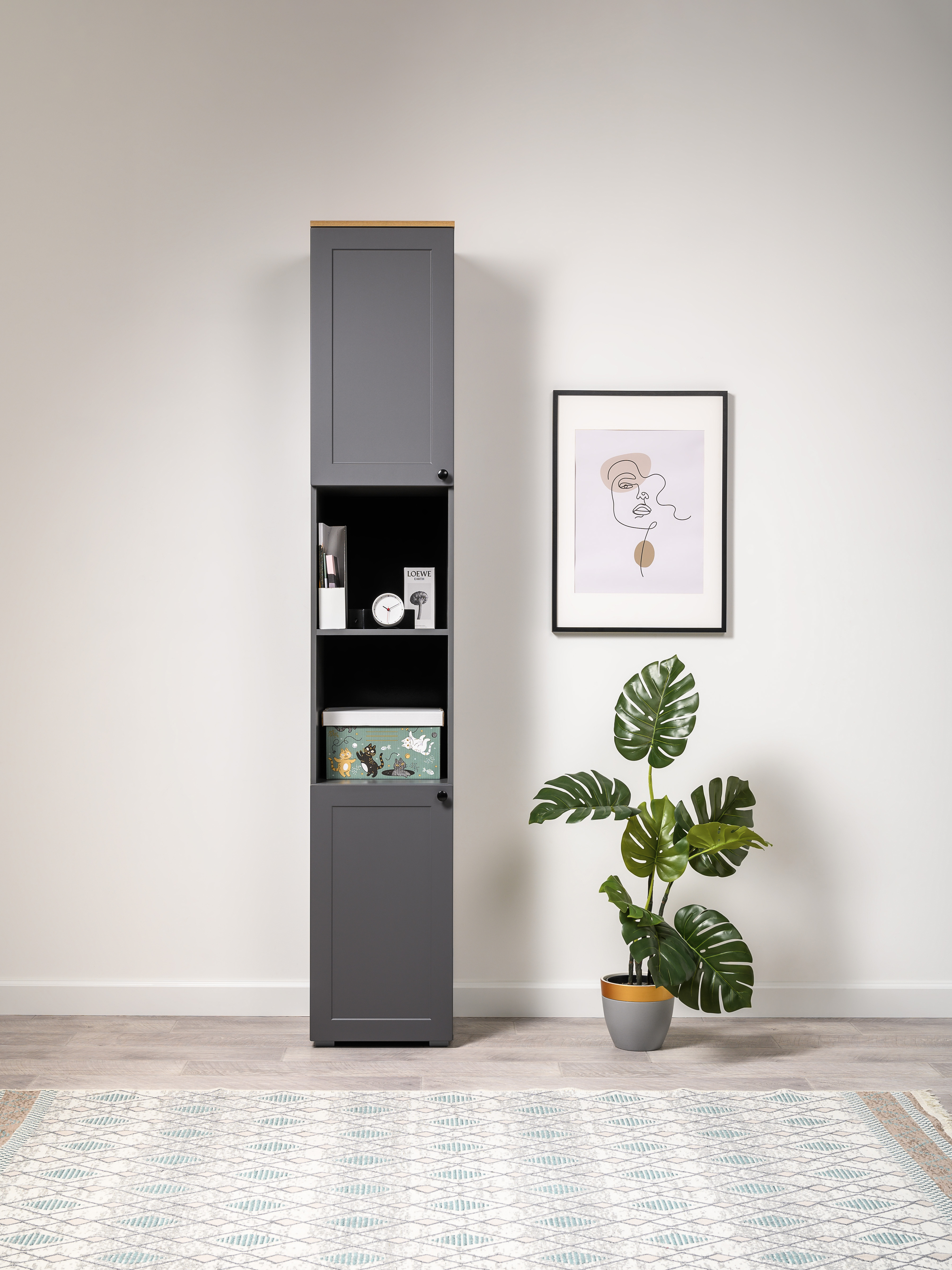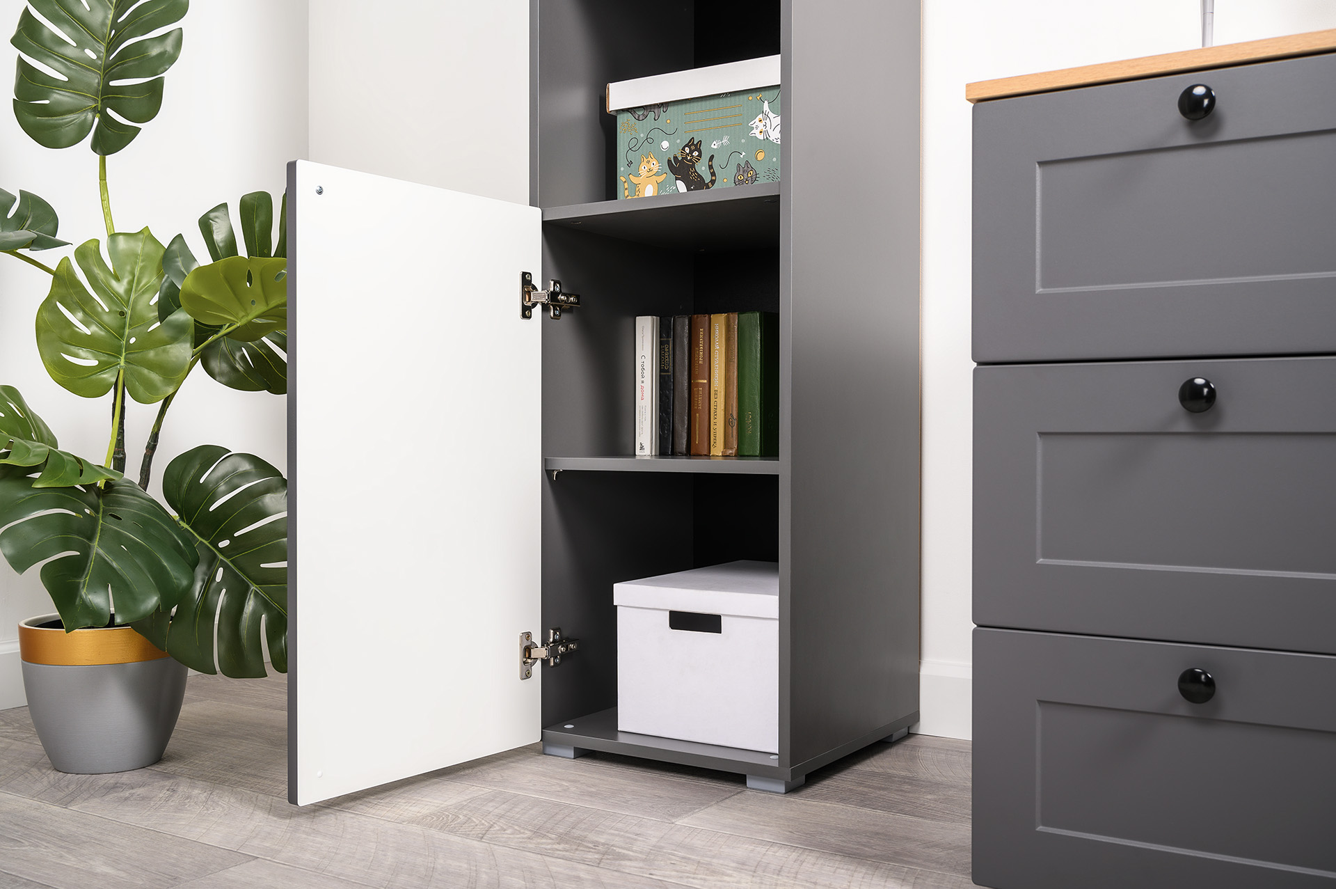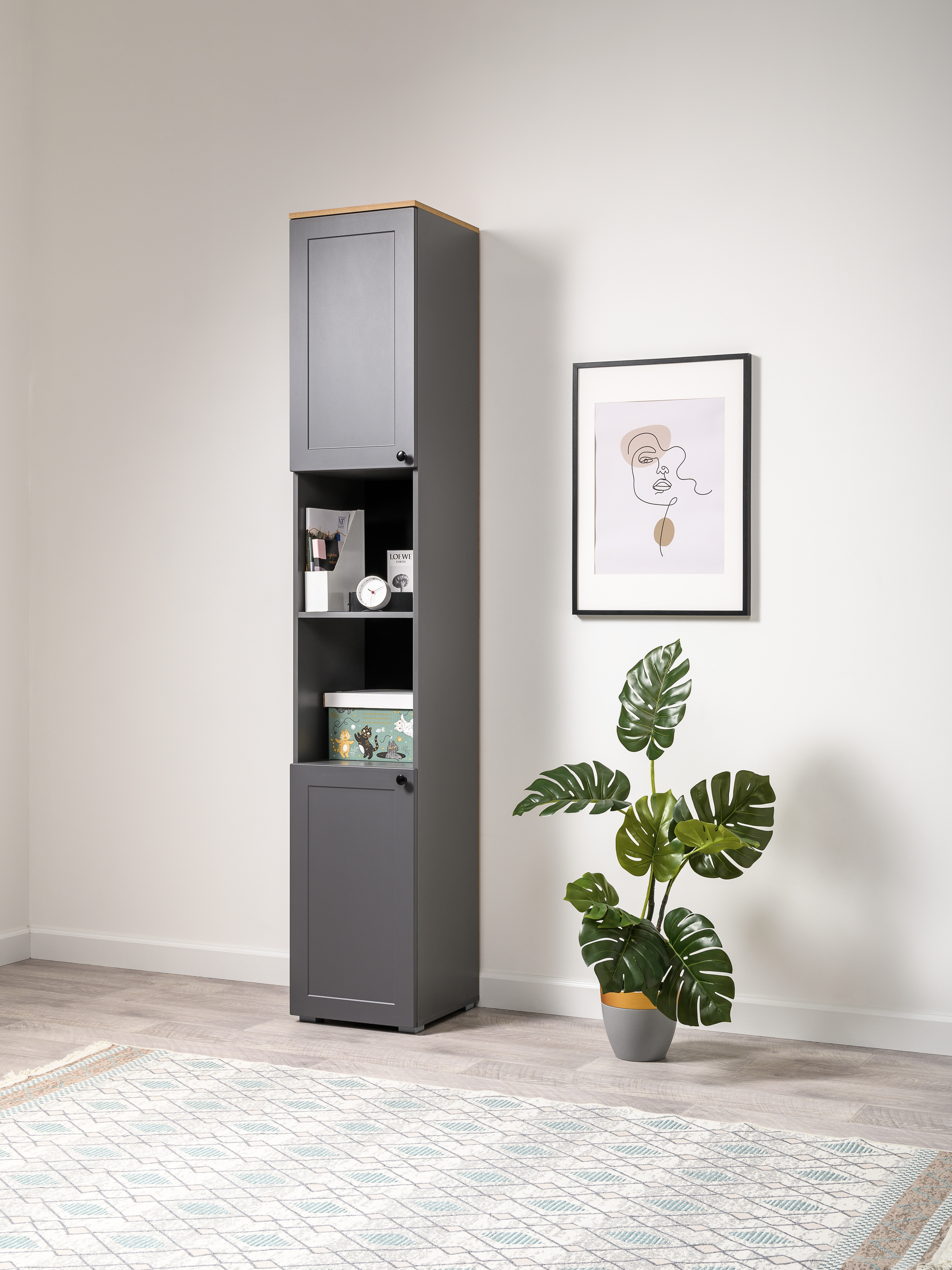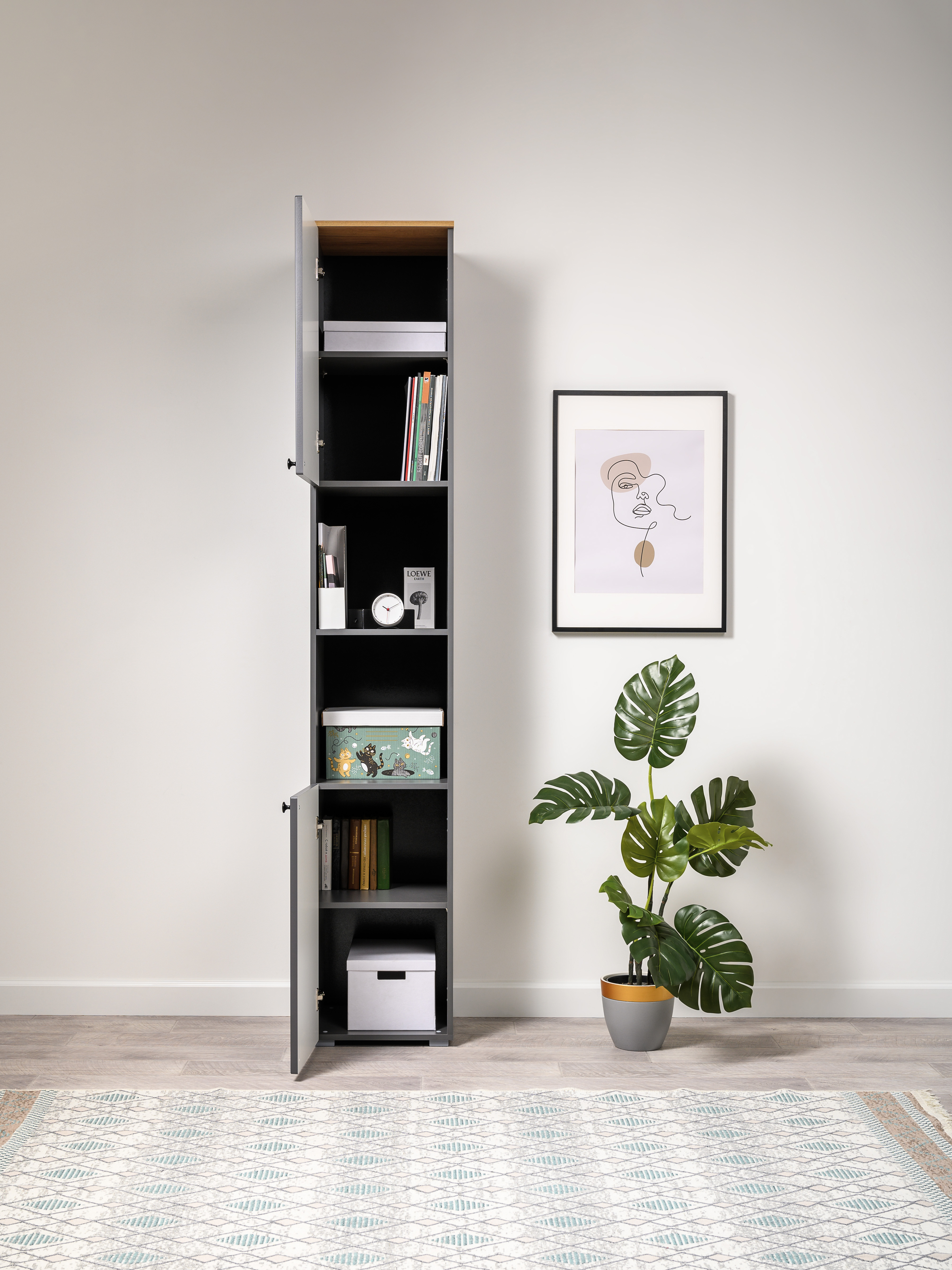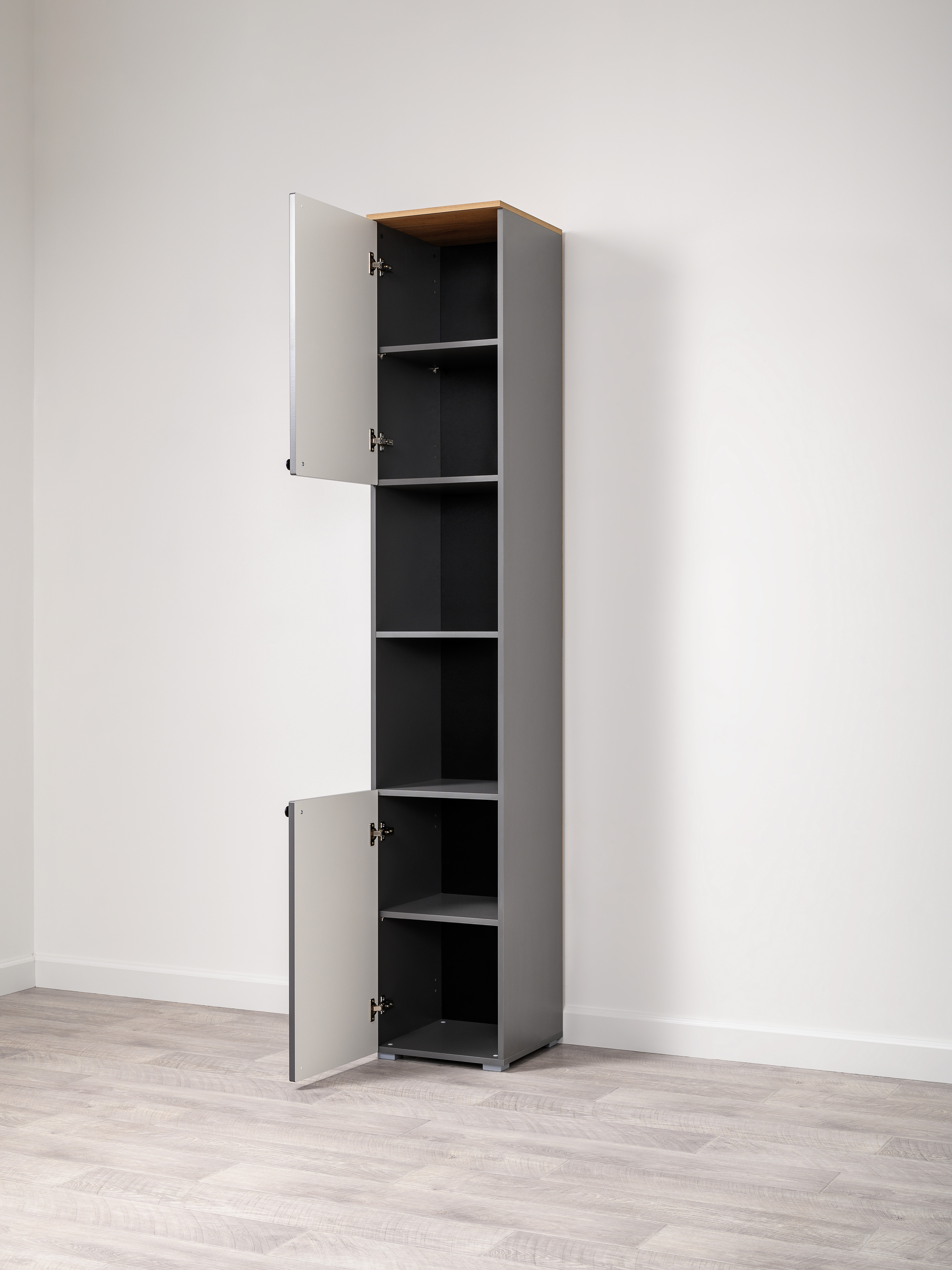 Стеллаж Остин 16.427 серый графит 0162 РЕ, дуб золотой CRAFT, графит ZB 856-2 ПВХ, сборка на любую сторону