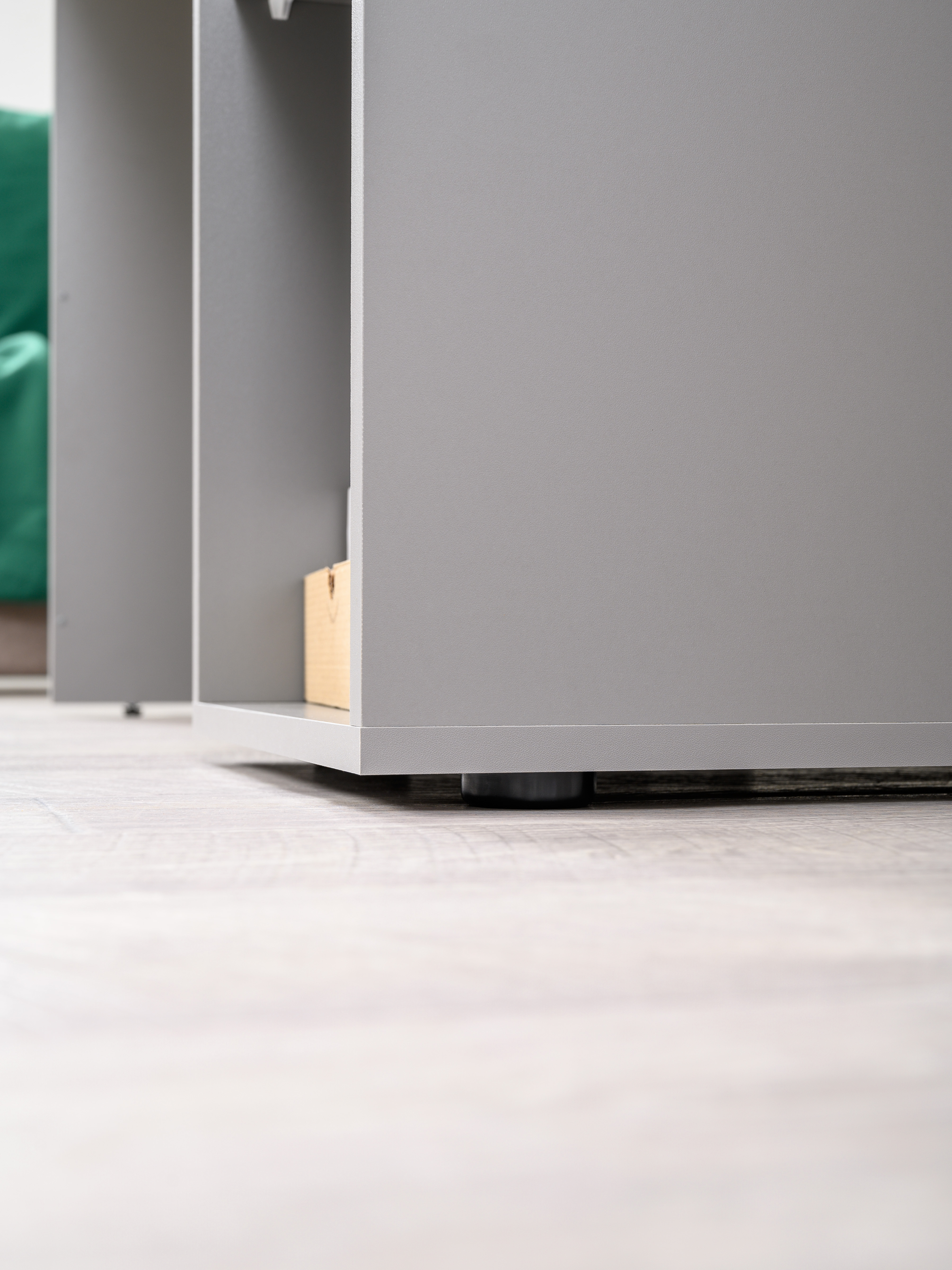 Стол письменный Лайт 12.163 серый шифер, дуб белый exclusive OW D4430, сборка на любую сторону, два варианта сборки тумбы